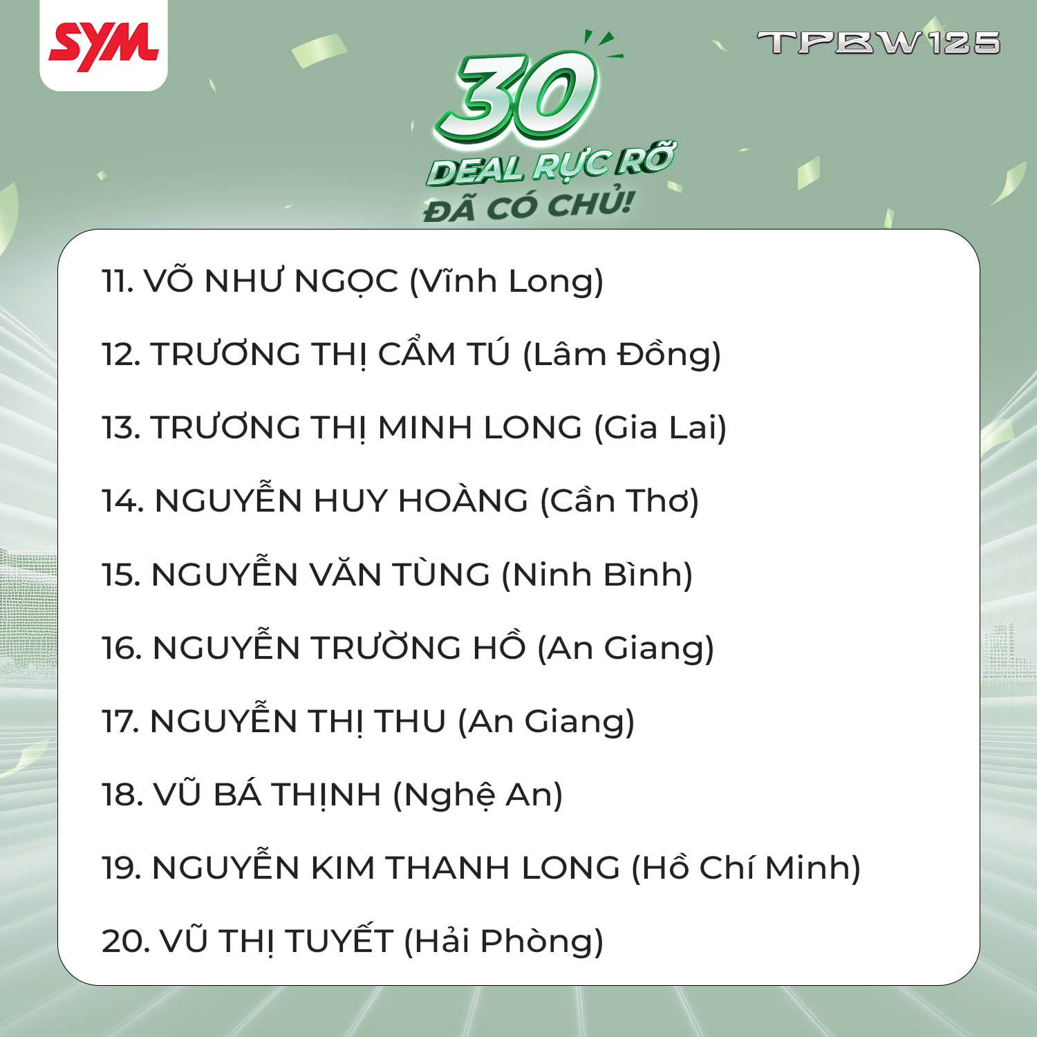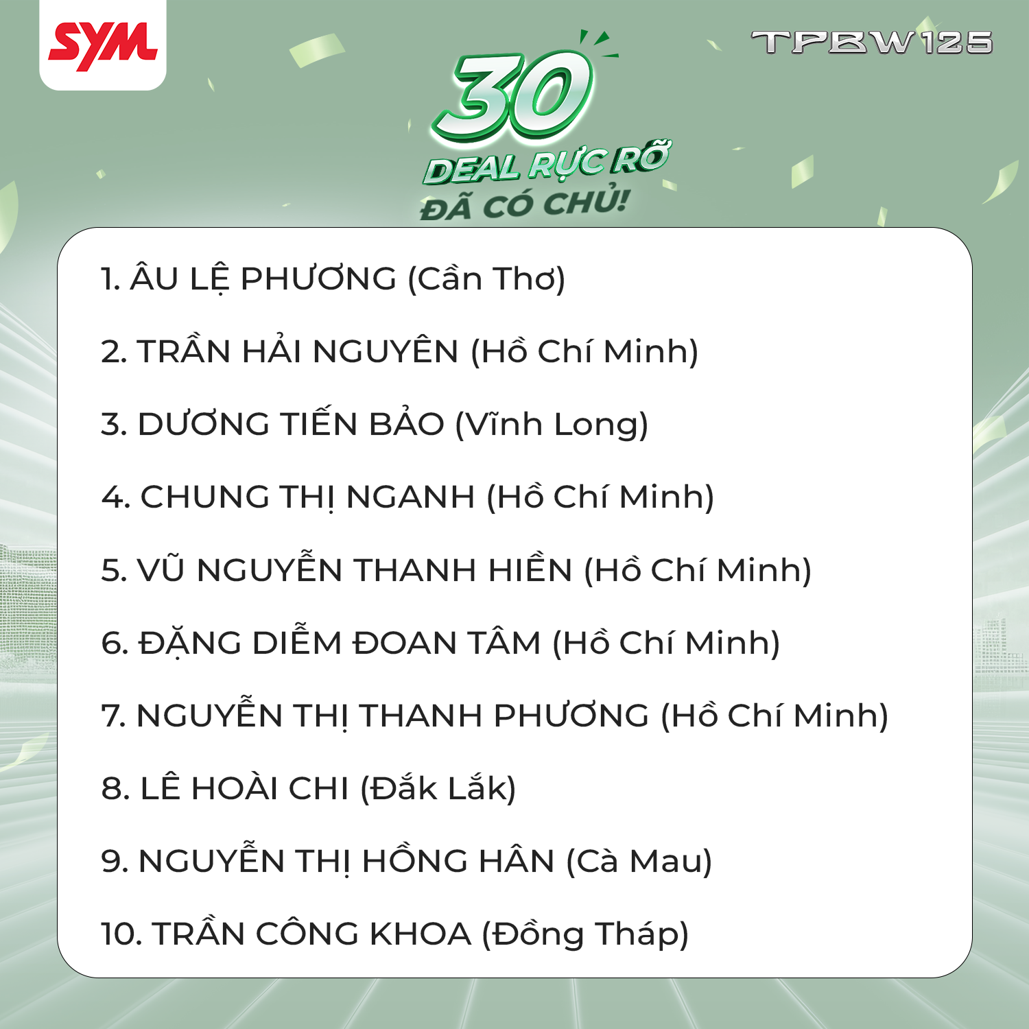 CÔNG BỐ DANH SÁCH 30 KHÁCH HÀNG TPBW 125 ĐÃ CHINH PHỤC DEAL QUÀ TẶNG CỰC CHẤT