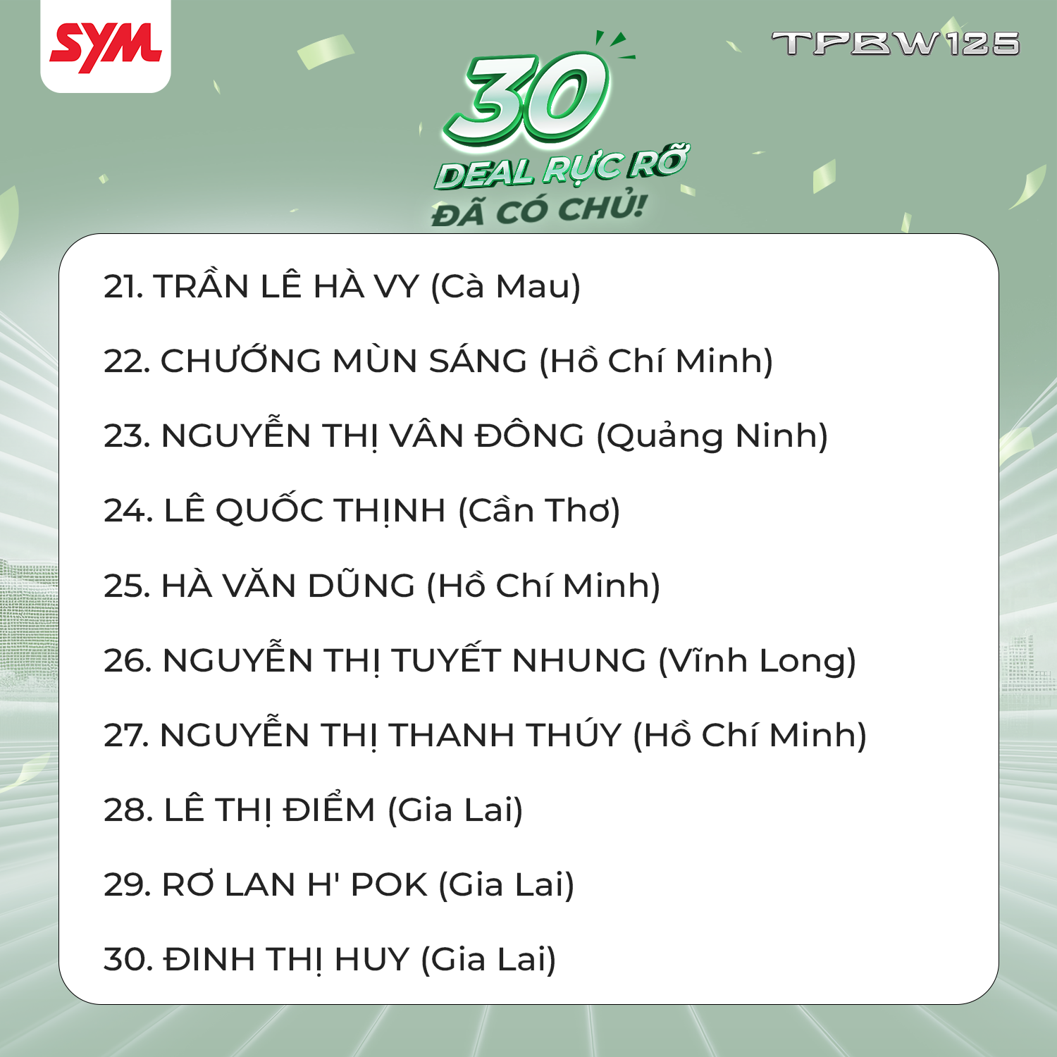 Chi tiết danh sách 30 khách hàng may mắn vui lòng xem tại hình ảnh bên dưới